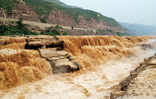 壶口瀑布是中国黄河上的著名瀑布,其奔腾汹涌的气势是中华民族精神的象征。东濒山西省临汾市吉县壶口镇,西临陕西省延安市宜川县壶口乡。距太原大约5、6个小时车程;距西安大约2个多小时车程。黄河至此两岸石壁峭立,河口收束狭如壶口,故名壶口瀑布。瀑布落差9米,蕴藏丰富的水力资源。